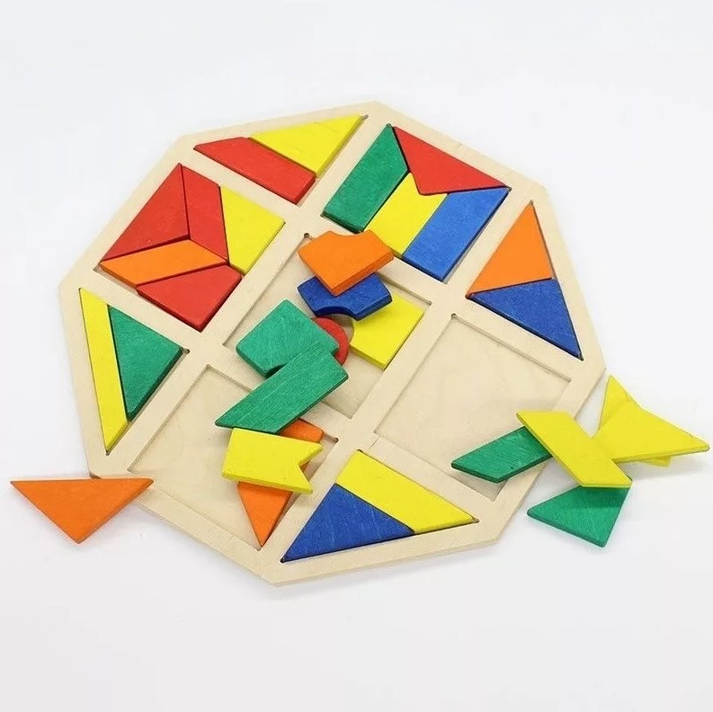 Дидактический материал представлен в виде цветной мозаики. Развивает моторику и мышление (в том числе, у детей с ОВЗ: нарушениями опорно-двигательных функций, ДЦП, РАС и проч.). Рамка с пустотами заполняется сочетанием фигур.
