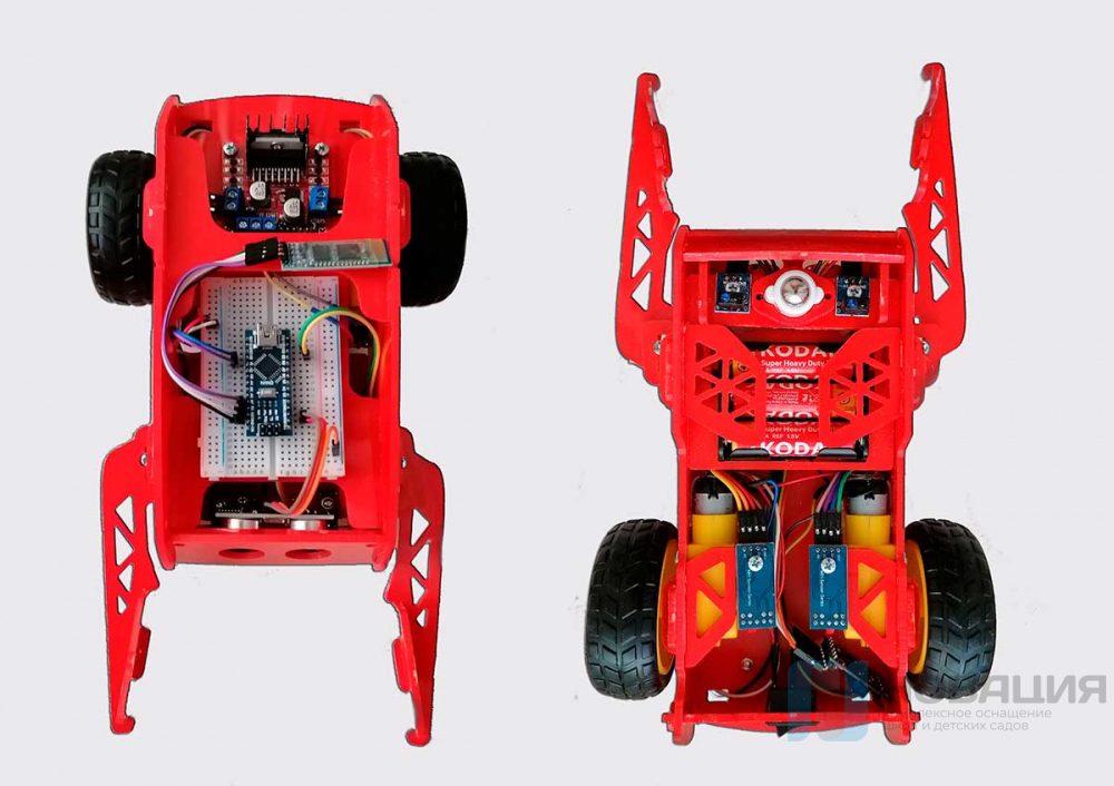 Из деталей конструктора получается робот, который имеет широкий ряд возможностей: езда по линии, реагирование на препятствия, включение фар, запоминание пройденной траектории. Можно моделировать различные ситуации и закладывать в программу множество вариантов условий.