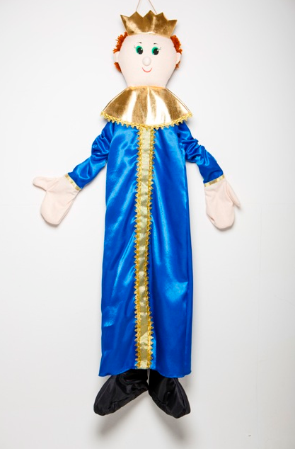 Голова ростовой куклы фиксируется на шее ребенка с помощью тесьмы. Ноги дошкольника вставляются в валенки, руки – в варежки и рукава на резинках.