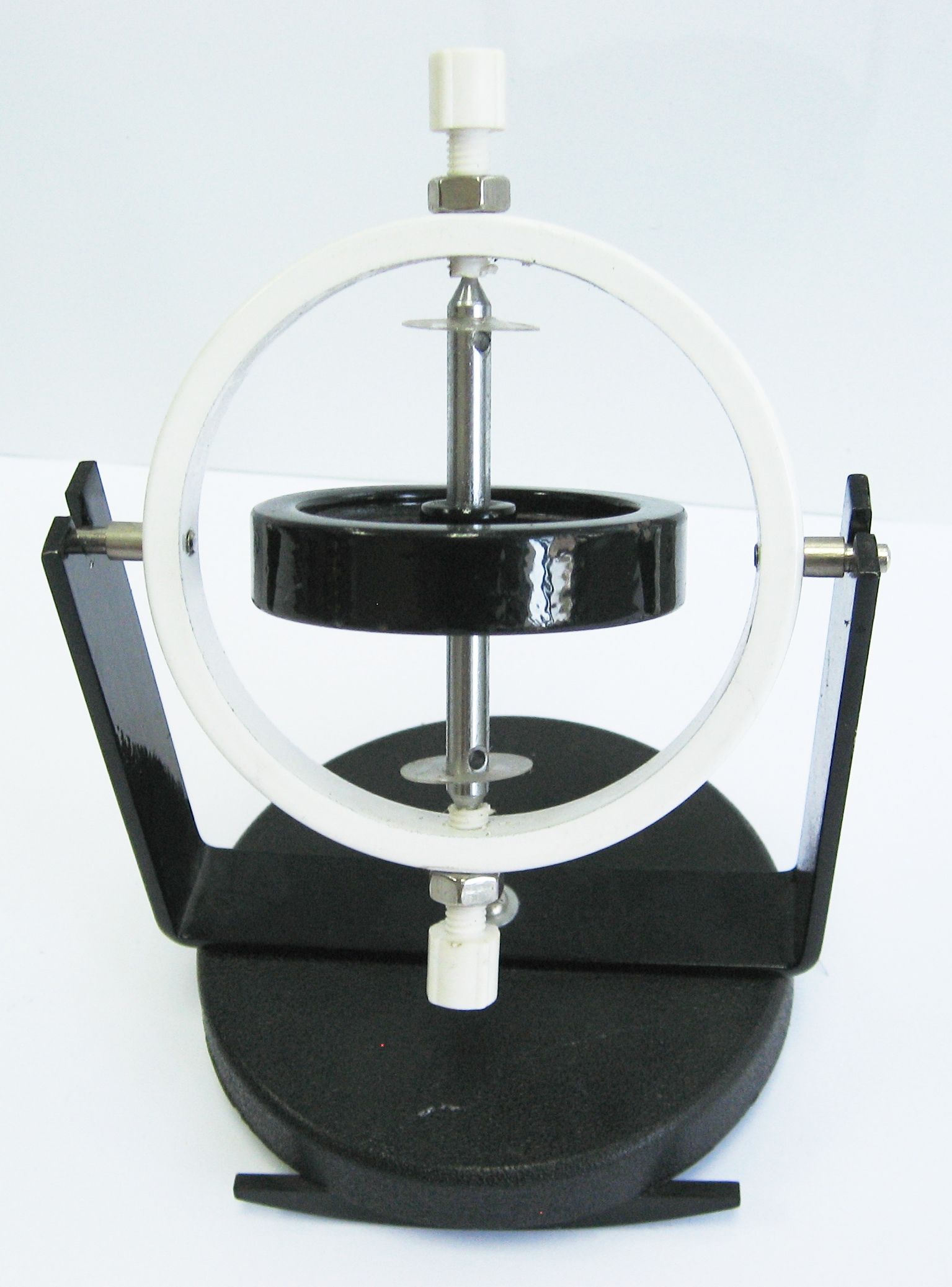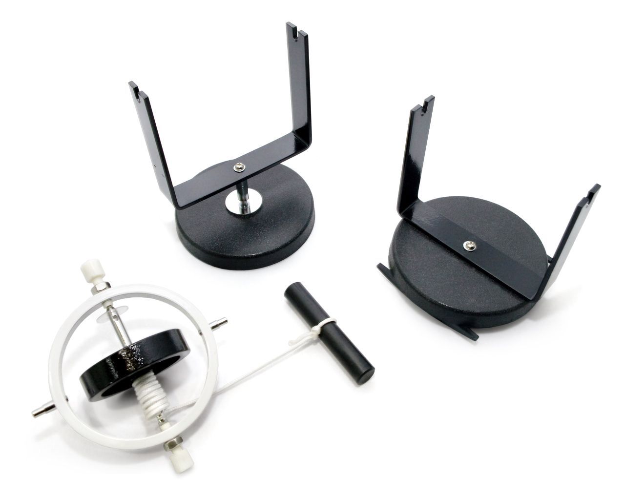 Модель гироскопа выполнена из металла, состоит из: гироскоп в держателе, шнур для придания вращения имеет рукоятку, массивное основание, подвижное основание.