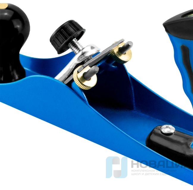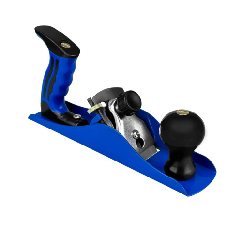 Режущая поверхность фиксируется в разных положениях (с учетом плотности заготовок). Точность установки настраивается подкручиванием винта. Рубанок легкий, предусмотрены 2 ручки.