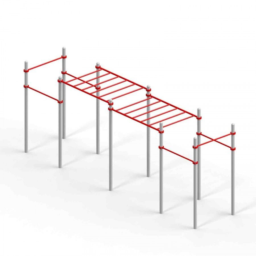 В составе комплекса: 10 несущих стоек, перекладины, 2 рукохода.