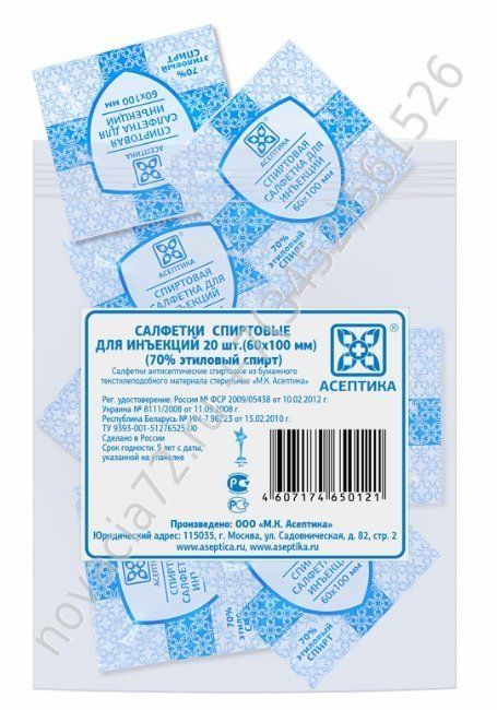 Обладает антисептическим и антибактериальным действием. С помощью спиртовых салфеток можно быстро продезинфицировать руки, обработать инструменты и различные поверхности.
