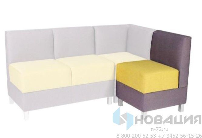 Одноместная секция без подлокотников используется в качестве кресла или составляющей модульного дивана. Материал обивки подходит для влажной уборки.