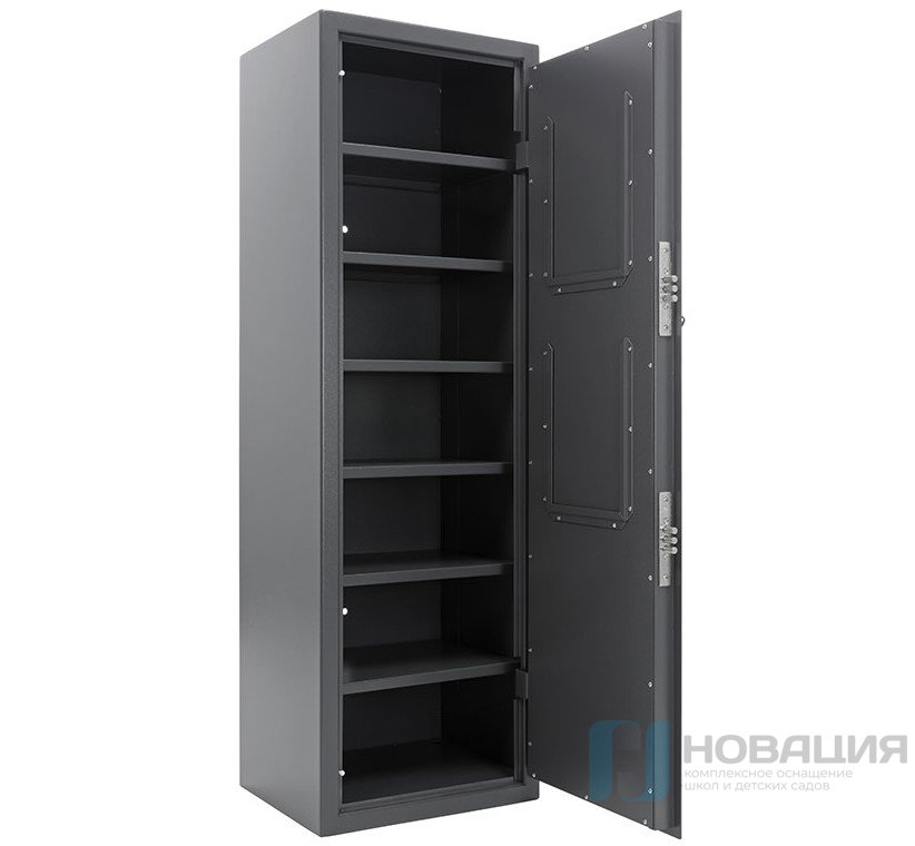 Состоит из шести полок. Шкаф соответствует ГОСТ 55148-2012, Приказу №288 МВД РФ от 12.04.1999 г, Закону об оружии №150 ФЗ от 13.11.96г., Постановлению правительства №814 от 21.07.1998 г.