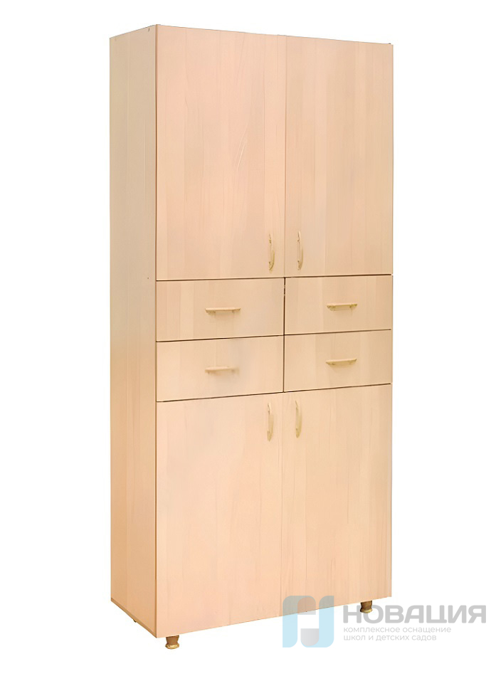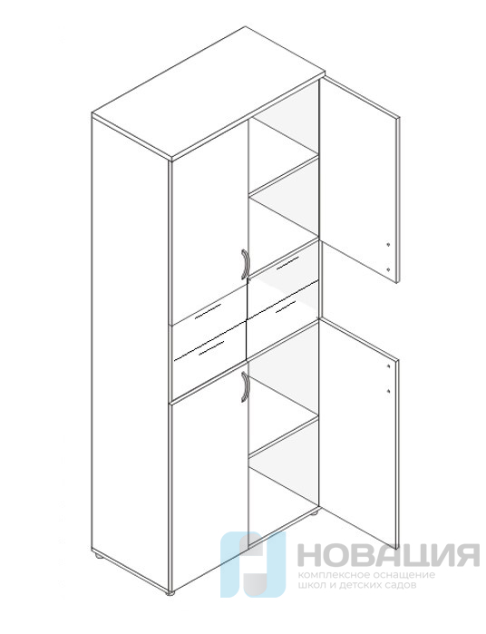 Шкаф с 4-мя глухими дверцами размещается в кабинетах школ, ДОУ, иных муниципальных учреждений. Подходит для хранения служебной документации, книг и тетрадей, учебных пособий, канцелярских принадлежностей.