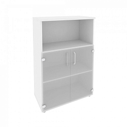 Узкий шкаф для кабинета представлен низким фасадом из ЛДСП и 3-мя полуоткрытыми отделениями, которые располагаются друг под другом. Детали из ЛДСП отделаны кромками толщиной 0,4 мм и 2 мм. Дверца дополняется ручкой.
