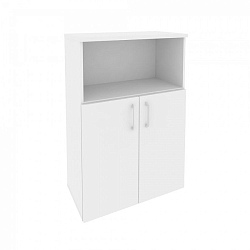 Узкий шкаф с закрытым нижним фасадом подходит для хранения бумажных документов. Створка двери оснащается фурнитурой, открывается направо или налево. Опоры корпуса подстраиваются под неровности покрытия пола. Поверхности из ЛДСП отделаны кромкой (0,4 и 2 мм) в цвет мебели. Верхний фасад представлен 3-мя отделениями полуоткрытого типа.