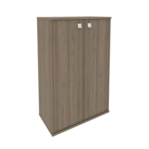Средний шкаф для документов представлен закрытым фасадом с распашными дверцами. Опоры широкого шкафа подстраиваются под неровности покрытия пола. Поверхности из ЛДСП отделаны кромкой (0,4 и 2 мм) в цвет мебели. 2 створки двери дополняются фурнитурой.