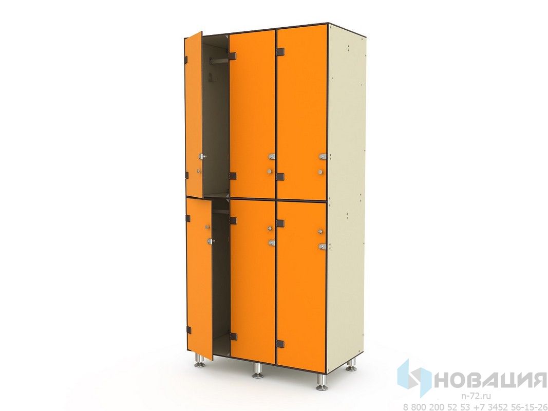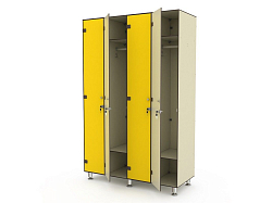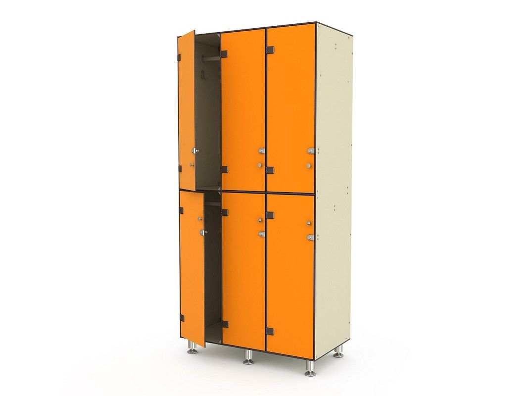 Прочный 2-ярусный шкаф из пластика HPL устанавливается в школьной спортивной раздевалке. Изделие подходит для хранения водного инвентаря. Ячейка оборудуется крючком, штангой для вешалок и дверцей на механическом замке.