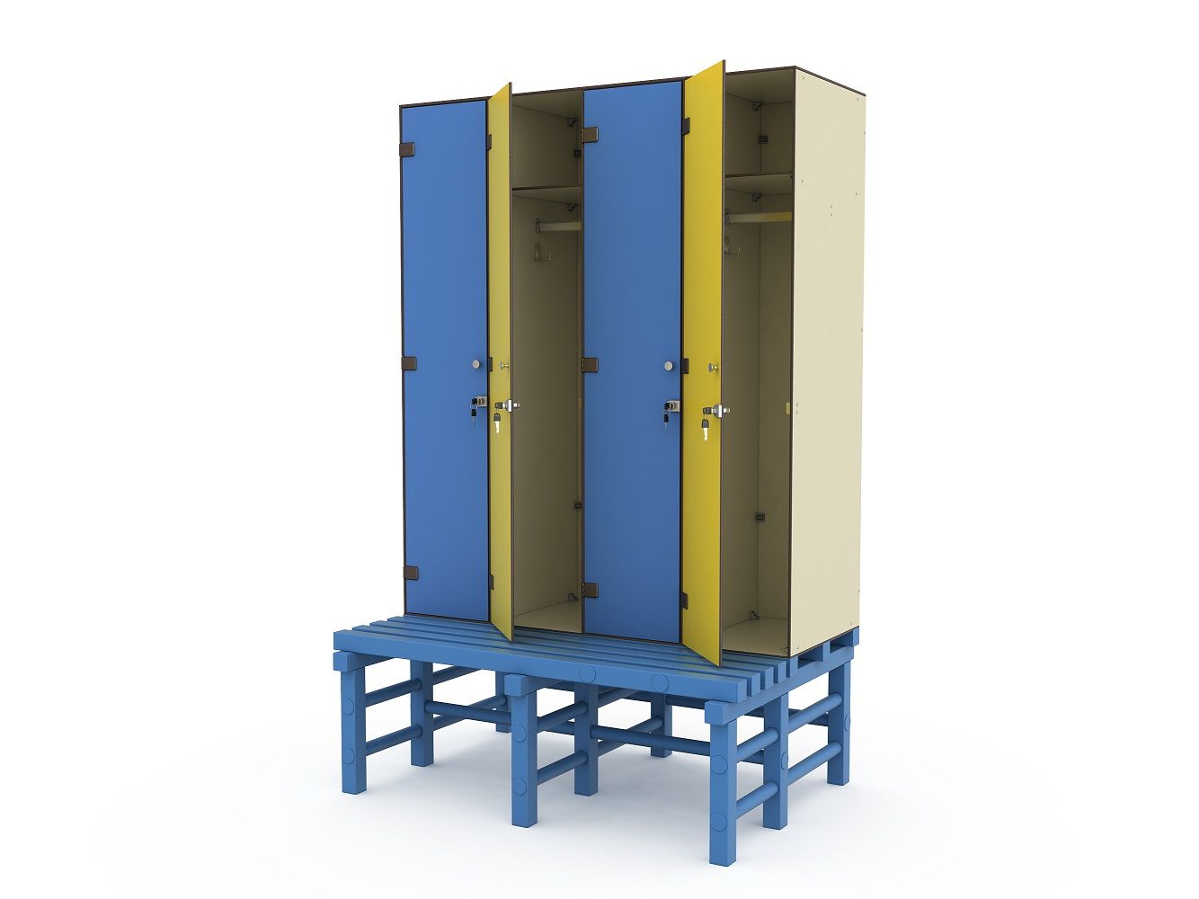 /Шкаф для раздевалки одноярусный со скамьей, пластик