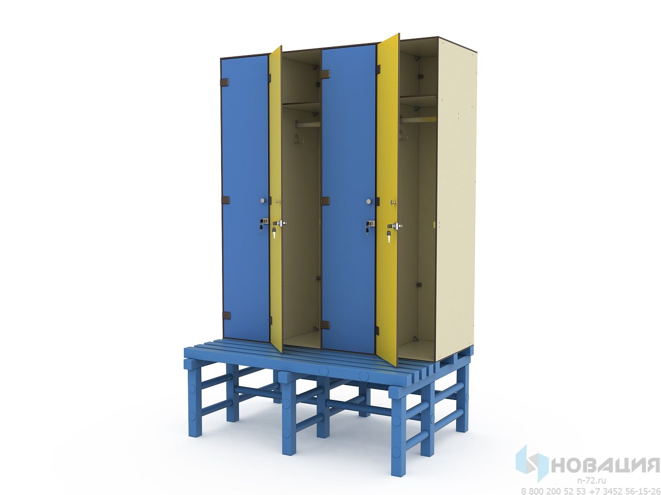 Шкаф для раздевалки одноярусный со скамьей, пластик