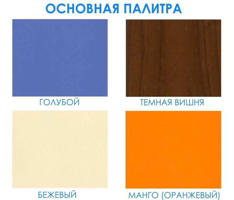 1) основной палитры: Голубой, Темная вишня, Бежевый, Манго (Оранжевый);