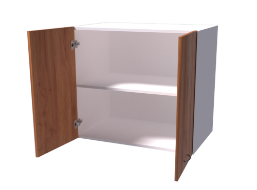 Настенный шкаф предназначен для хранения посуды и прочего кухонного инвентаря. Оснащен 2-мя дверцами с ручками-скобами. Внутри шкафа расположена полка.