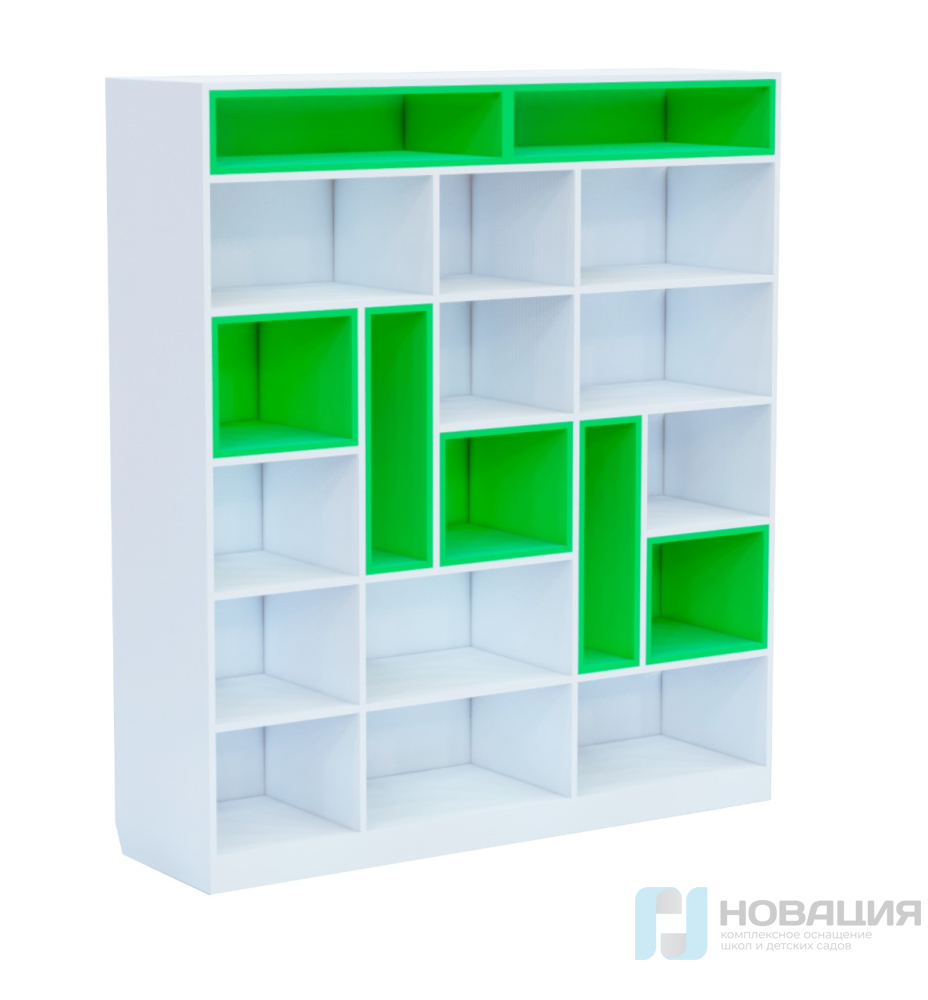 Предназначен для хранения книг, поделок и прочих материалов. Шкаф оснащен полками разных размеров, напоминающими тетрис, и предлагается в различных цветовых вариантах.