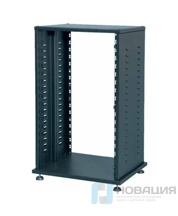 Шкаф предназначен для установки звукового, светового и видеооборудования (стандарт 19″). Рассчитан на нагрузку 50 кг. В шкафу предусмотрено 18 мест.