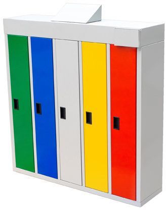 Закрытый стальной корпус оснащается отдельными секциями, которые запираются при помощи одностворчатых дверей.