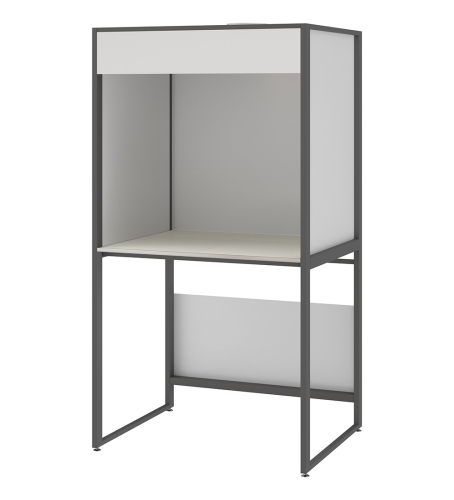 Каркас изготовлен без применения алюминиевых и пластиковых деталей в крепежных узлах. Выполнен из профильной трубы 50х25х1,5 мм на П-образных ножках, на регулируемых по высоте металлических опорах высотой 35 мм для компенсации неровности пола. Панели изготовлены из стальных листов толщиной 1 мм.