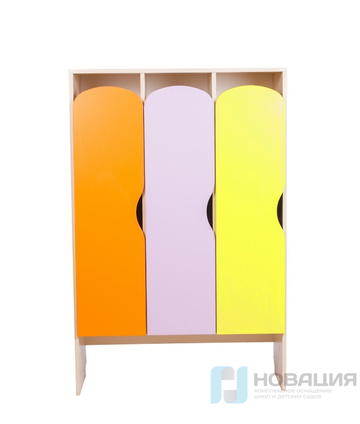 Шкафчик из трёх секций предназначен для оснащения приемной зоны в ДОУ.