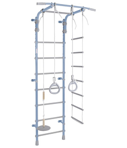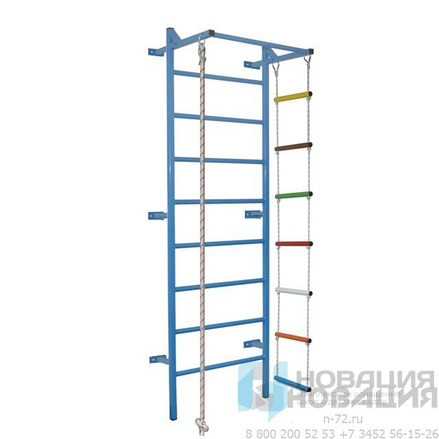 Габаритные размеры (ДхШхВ): 550х480х1800 мм. Стенка дополнена турником, канатом и лесенкой для лазания. |