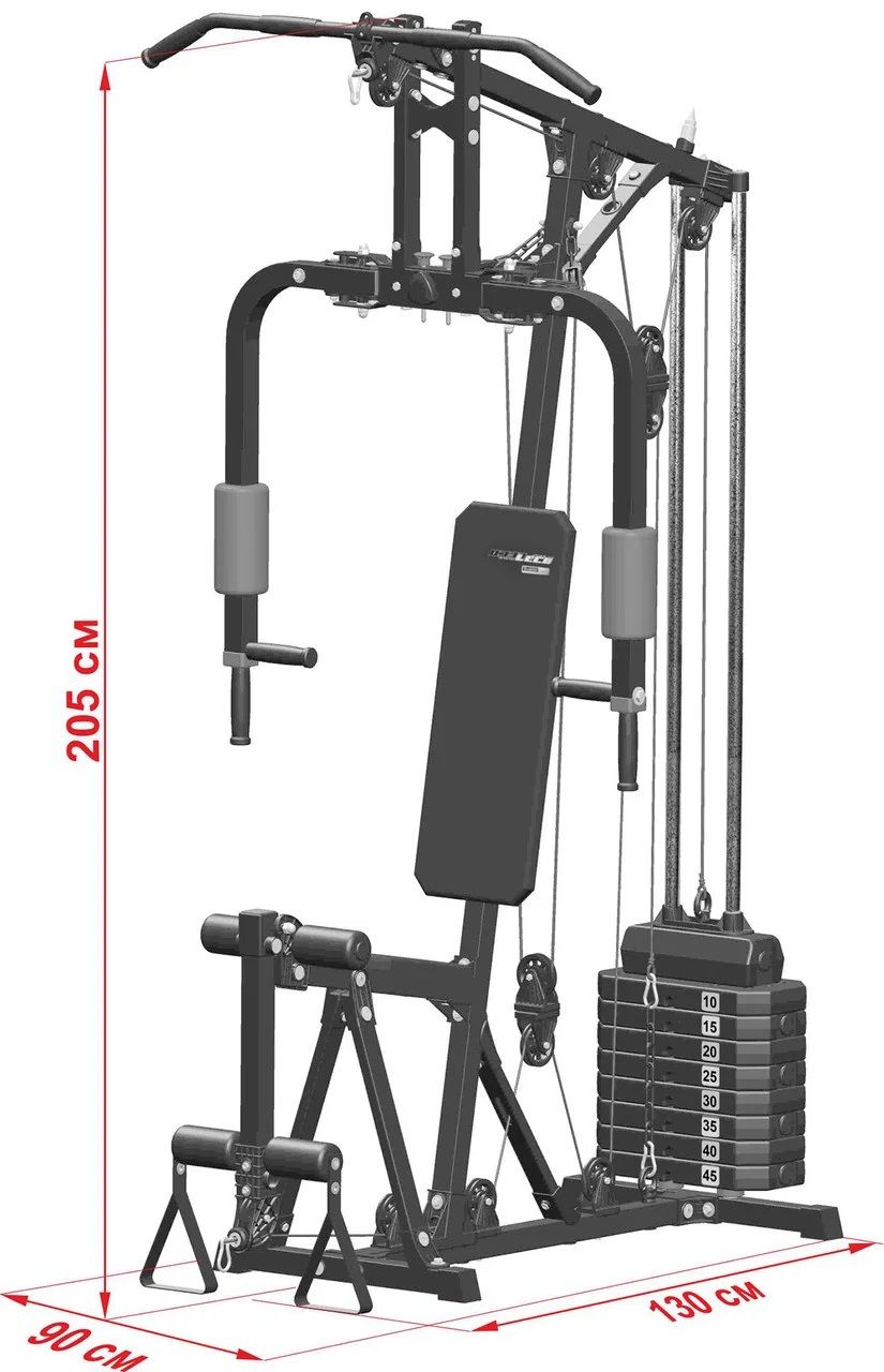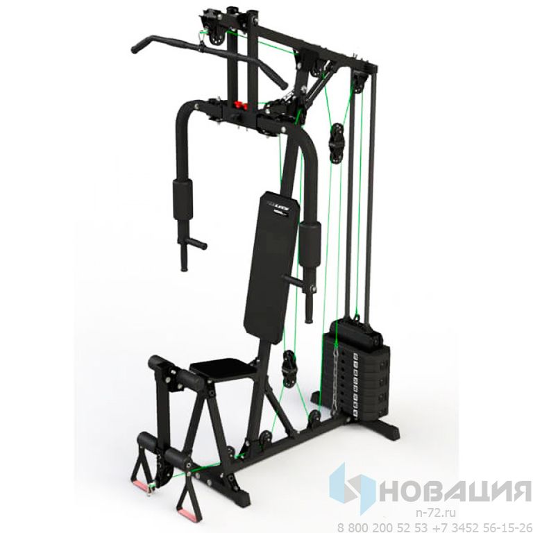 Тренажер с подвижными блоками позволяет регулировать нагрузку при выполнении упражнений на развитие мышцы рук, плеч и корпуса. Рукоятки оснащаются мягкими накладками, сиденье и спинка мягкие, сохраняют тепло. Общий вес блоков составляет 45 кг, максимальный вес человека 100 кг.