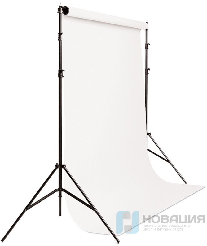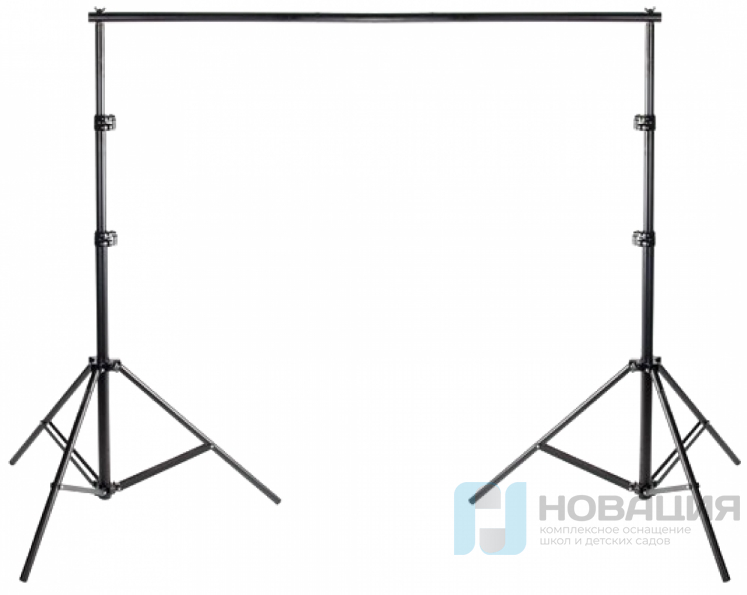 Система установки подходит для бумажных фотофонов (монтаж непосредственно на штанге) и рулонных фонов из нетканого материала шириной до 3 м. В комплектацию включены стойки и телескопическая перекладина.