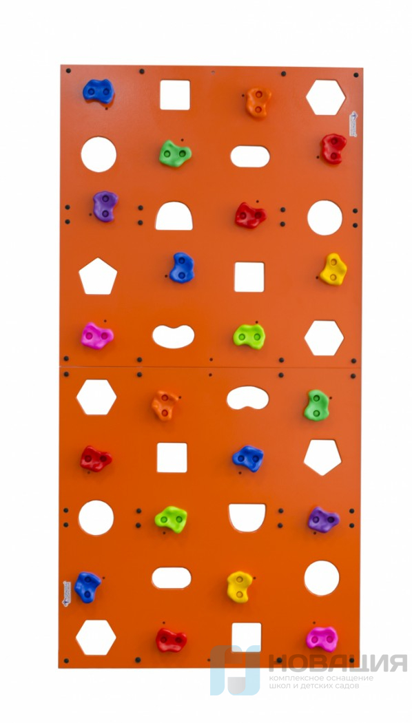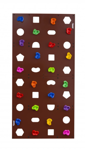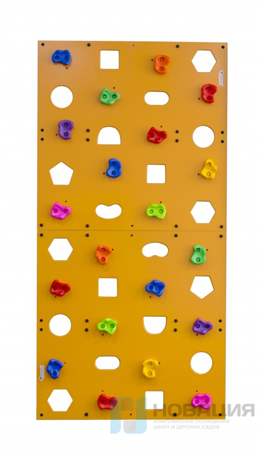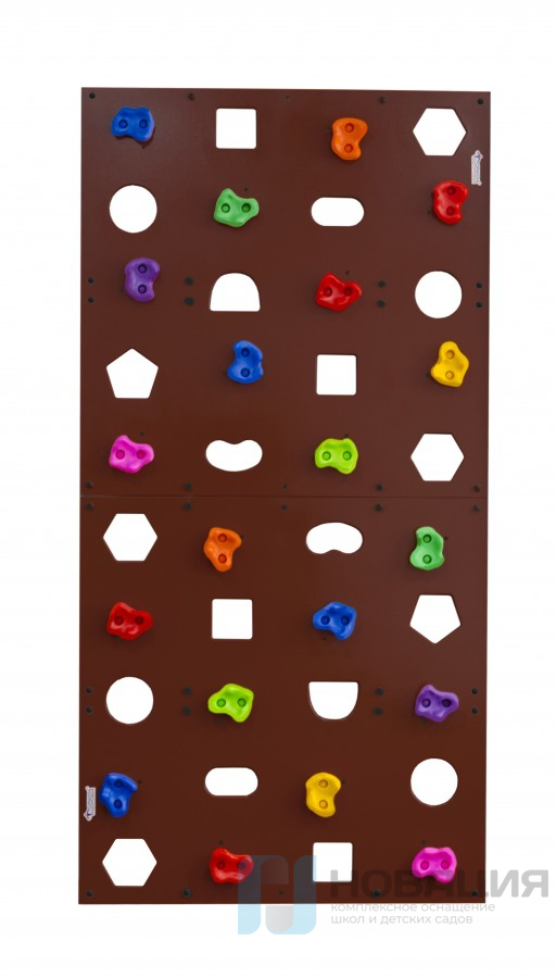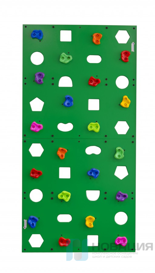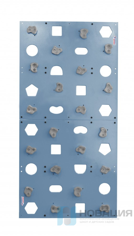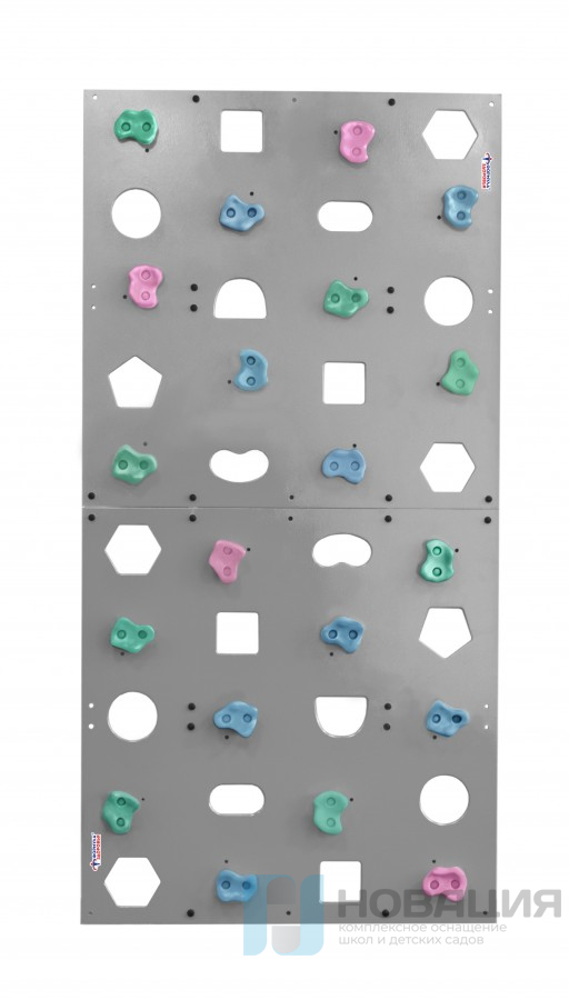 Пристенный скалодром с отверстиями для монтажа оснащается жесткими креплениями. Элементы дополняются заглушками из пластика. Конструкция выдерживает 100 кг. Изделие пригодно к использованию в летнем лагере, школьном спортзале. Несколько скалодромов легко соединяются в единую поверхность для тренировок. Предусматриваются дополнительные отверстия, благодаря которым увеличивается количество зацепов.
