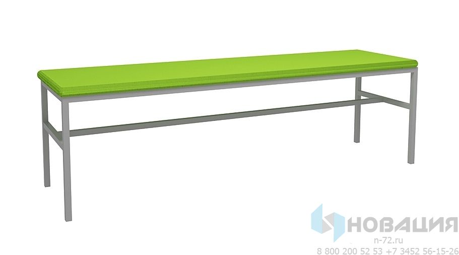 Конструкция состоит из металлического каркаса на 4-х опорах, 2-х поперечных перекладин, 1 продольной перекладины, мягкого прямоугольного сиденья.