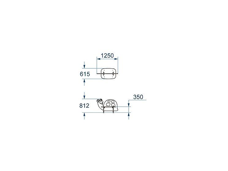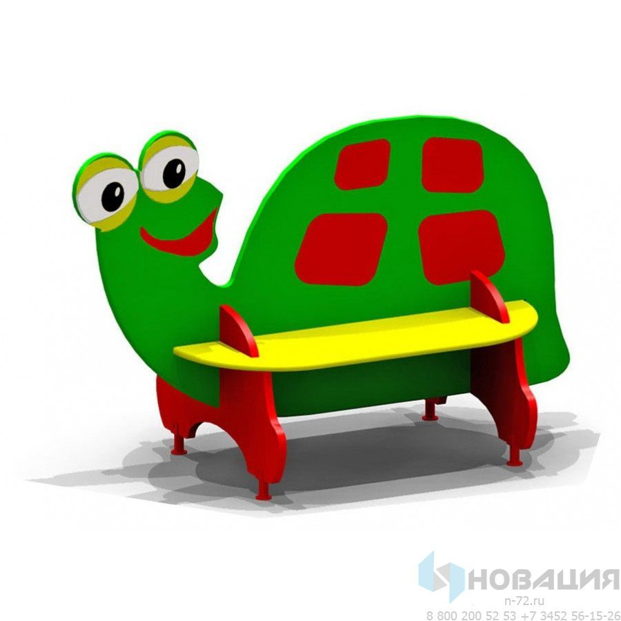 Изделие состоит из 2-х сидений, разделенных фигурной спинкой с изображением черепахи, и 4-х опор.