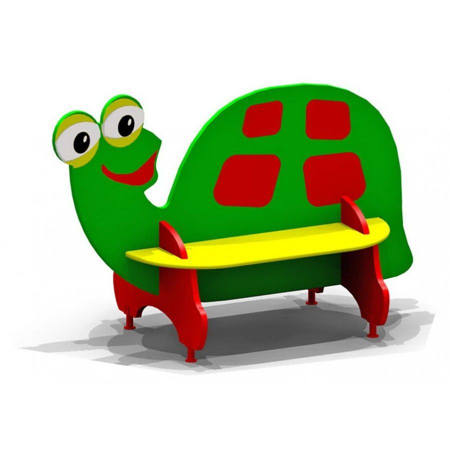 Изделие состоит из 2-х сидений, разделенных фигурной  спинкой с изображением черепахи, и 4-х опор.