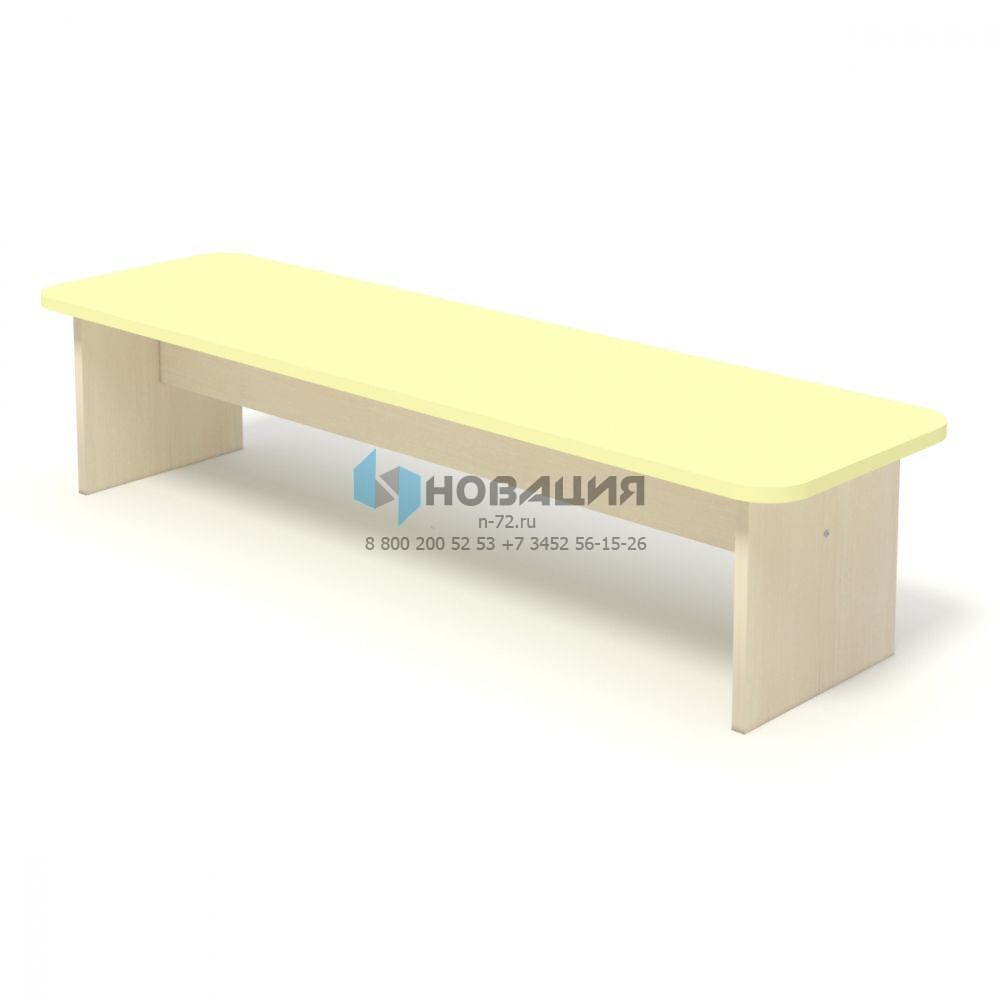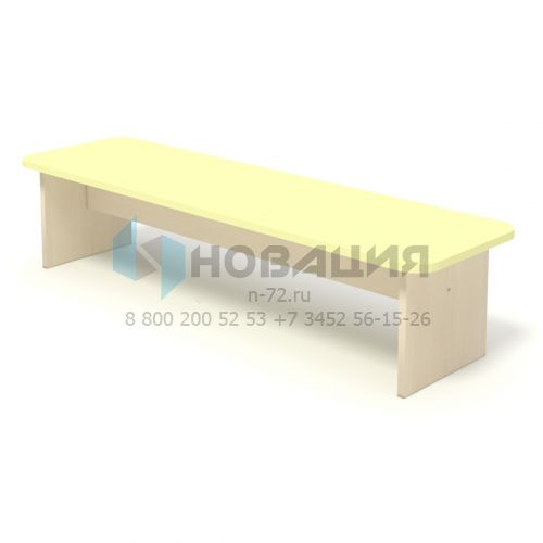 Скамейка для гардеробной вмещает 2-5 человек. Состоит из сиденья с закругленными углами, 2-х сплошных боковых опор и поперечной перекладины.