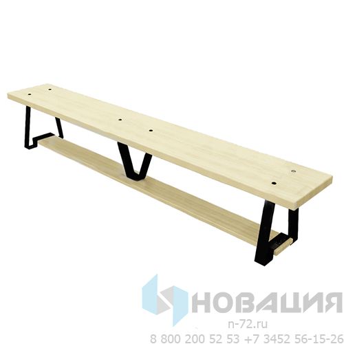 Представляет собой сборную конструкцию, состоящую из: сиденья, царги и металлических регулируемых опор, которые позволяют компенсировать неровности пола, обеспечивая тем самым устойчивость скамейке, исключая её шаткость. Дополнительной функцией регулируемых опор является возможность регулировать высоту скамейки.