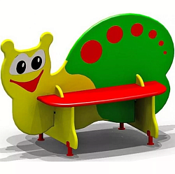 Скамья для детской зоны отдыха оснащена 2-мя сиденьями с фигурной перегородкой. Все углы закруглены. Элементы соединяются при помощи пазов. Опоры фиксируются на 4-х металлических подпятниках.