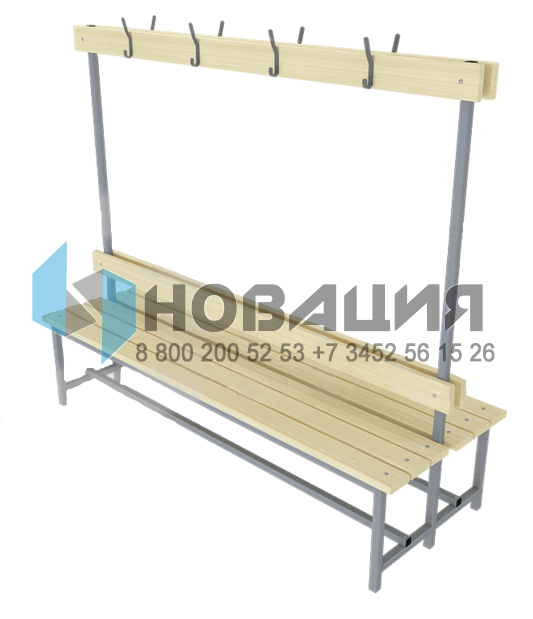 Скамья для раздевалок двусторонняя с вешалкой- практичный вариант для оснащения комнат для переодевания в школах, спортивных комплексах, и других учреждениях.