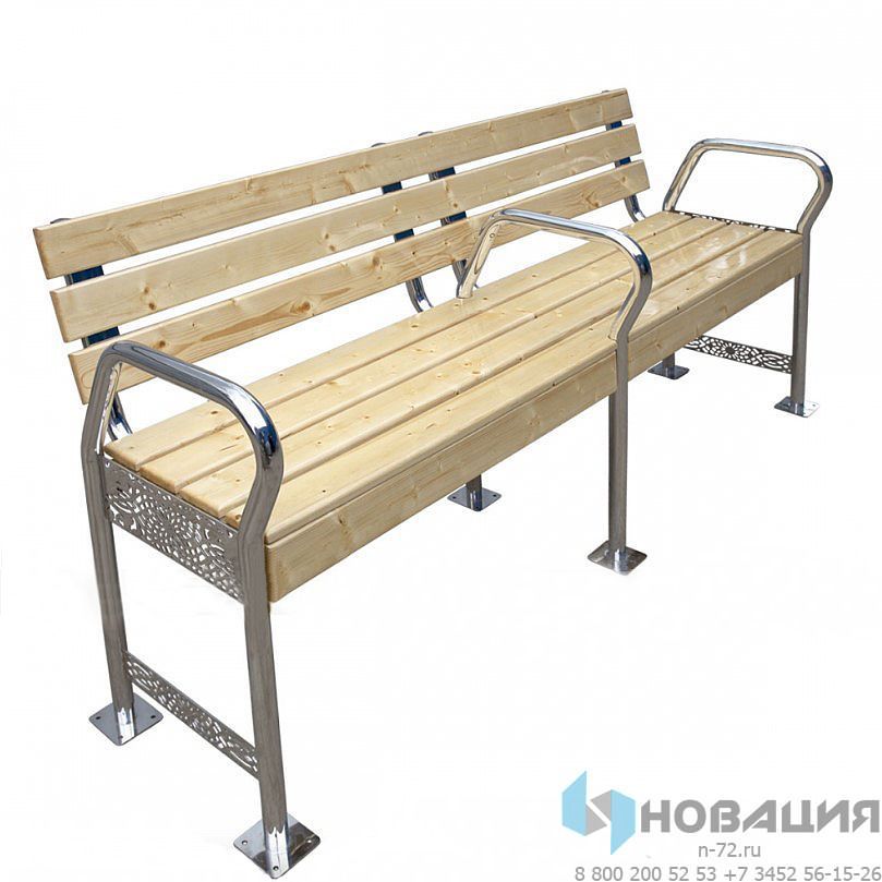 Конструкция отличается отсутствием острых углов. Для установки скамьи предназначены стальные фланцы.