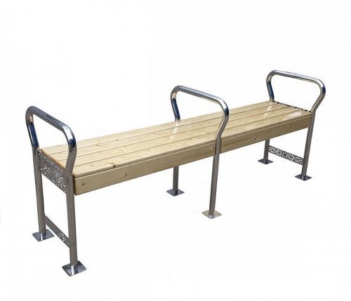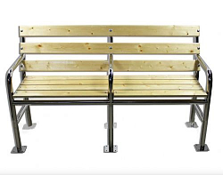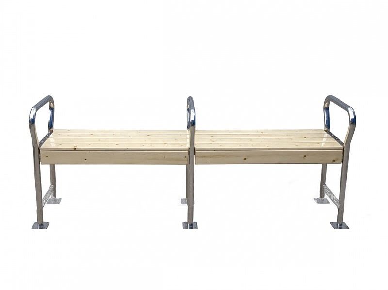 Конструкция отличается отсутствием острых углов. Для надежной фиксации скамьи предусмотрены стальные фланцы.