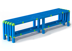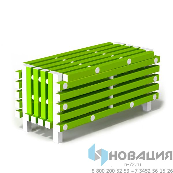 Скамья на каркасе из реек служит сиденьем и ящиком для спортинвентаря. Под съемной крышкой прямоугольная ниша, в которую поместятся мячи, скакалки или другие аксессуары.