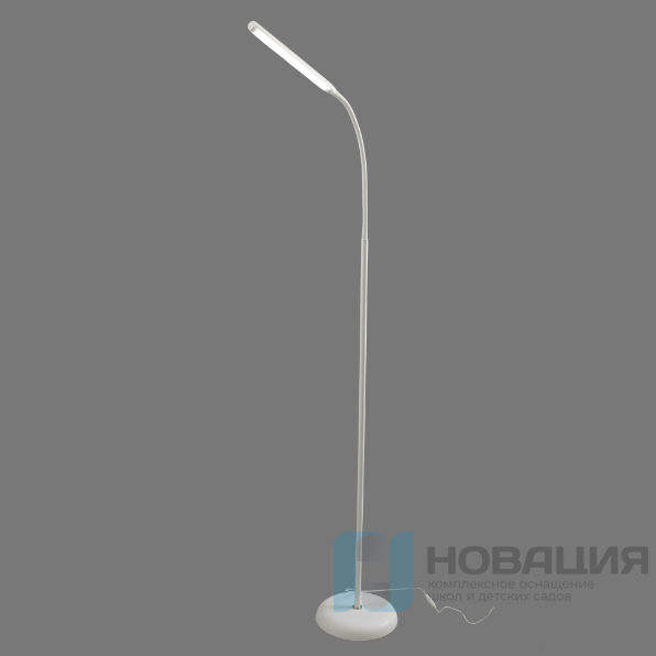 Напольный торшер со встроенными светодиодами оснащен сенсорным выключателем. Мягкий свет не раздражает глаза. Отличается сниженным энергопотреблением.