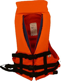 Индивидуальное спасательное средство регулируется по фигуре, надежно фиксируясь поясными боковыми ремнями и пряжками-застежками. Воротник поддерживает голову человека.