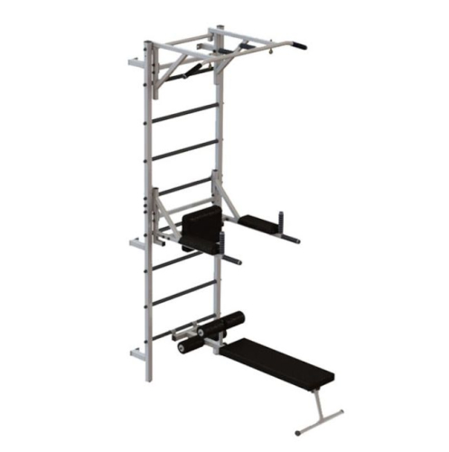 Все мягкие детали комплекса выполнены из высококачественного черного кожзаменителя и усилены металлом. Турник находится на расстоянии 63 см от основной стенки.