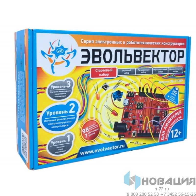 Это стартовый набор 2-го уровня для освоения основ электроники. Специальной подготовки не требуется. Первая программа пишется в течение получаса после освоения теории.