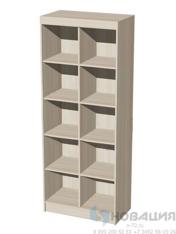 Поверхности из ЛДСП выдерживают нагрузки крупноформатных изданий. Полуоткрытые полки делятся перегородками на 10 прямоугольных отделений с глухой задней стенкой.