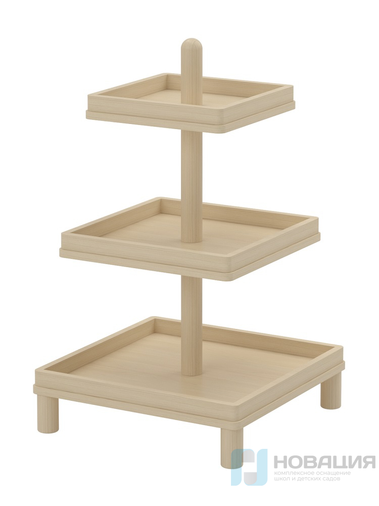 Изделие включает в себя 3 вместительные полки разной ширины (600,500,400 мм), которые соединяются по всему периметру специальным бортиком.