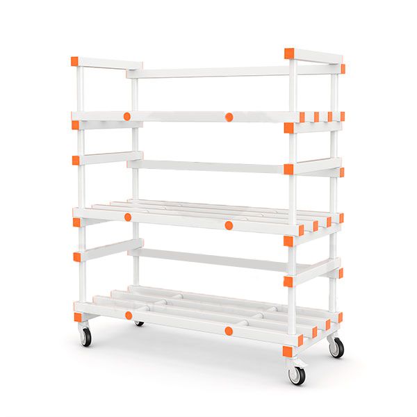 Стеллаж с 3-мя полками выполнен из влагостойкого материала. Поверхности легко чистить. Жесткие трубы прямоугольного и круглого сечения оснащены заглушками. С 3-х сторон предусмотрены перекладины (служат бортиками или вешалками для просушивания аксессуаров).