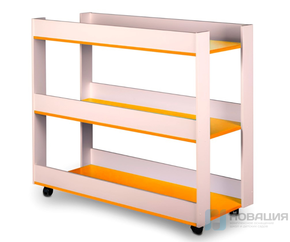 Стеллаж поможет держать в порядке оборудование, игрушки или методические пособия в группе детского сада или спортзале. Оборудован колёсиками.