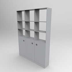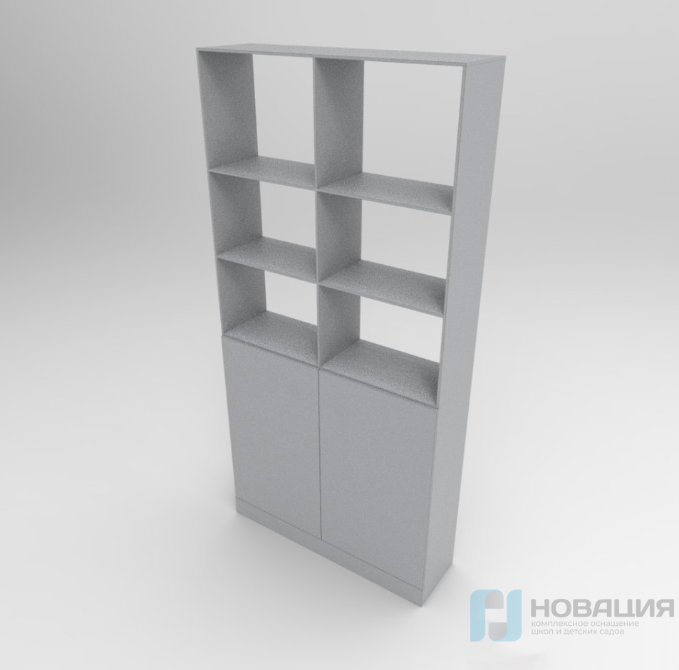 6 ячеек для книг или иных учебных материалов дополнены 3-мя нижними полками за 2-створчатой дверцей. На дверцах шкафа устанавливаются ручки-ракушки.