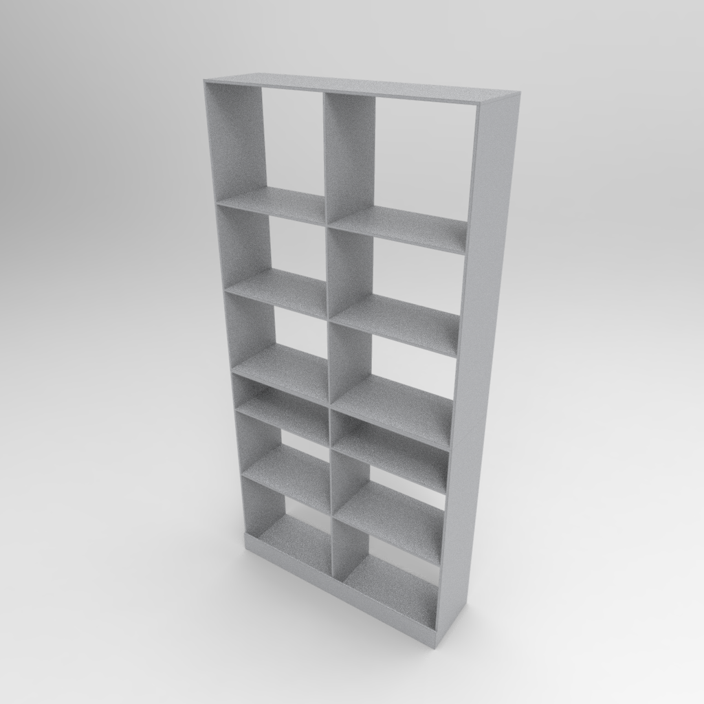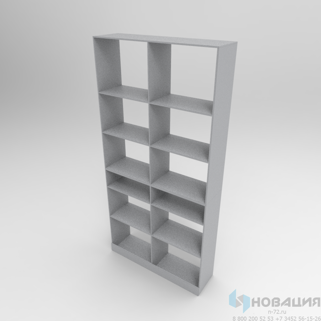 Серый корпус представлен сквозными ячейками, которые размещаются парами друг под другом: 6 верхних ячеек, 2 зауженные центральные и 4 нижние ячейки.