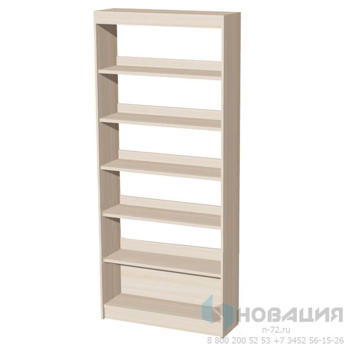 Стеллаж с цоколем украшается фризом, h 80 мм. Торцевая опора регулируется по высоте. На сквозных полках экземпляры удерживаются бортиками. Шкаф для книг выполняется из ЛДСП. Поверхности рекомендуется протирать влажной, а затем сухой тканью.