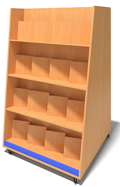 Мобильный стеллаж для выставки книг стандартного формата устанавливается в современной библиотеке или школе.