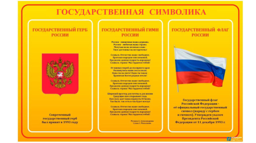 Стенд с государственной символикой (герб, флаг, гимн РФ) украсит патриотический уголок.